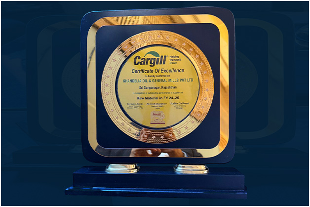 Mr. Yogesh Khandelia, Director, Khandelia Oil & General Mills Pvt. Ltd. received "CERTIFICATE OF EXCELLENCE - IN RECOGNITION OF OUTSTANDING PERFORMANCE IN SUPPLIES OF RAW MATERIAL IN FY 2024-25"